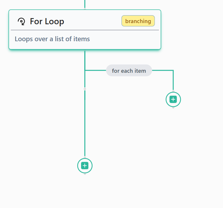 - Click the + button on the branch with the loop sign to select the action step you want to perform on each item in the array.